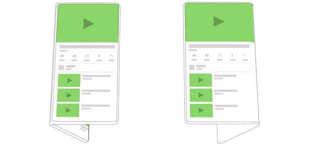 所以當(dāng)三星發(fā)布了 Infinity Flex 之后,以此為基礎(chǔ),它們決定與 Google 聯(lián)手共同開發(fā)可折疊手機(jī)軟件界面,而在演示中,我們似乎已經(jīng)能夠看到,在交互變化之后,柔性折疊屏手機(jī)開始展現(xiàn)出另一種我們想象中的樣子: